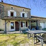 Gite - Les Hirondelles La Feuillie ligt op 2 km afstand van de Poitevin Moerassen en nodigt gasten uit om te ontspannen op een terras.